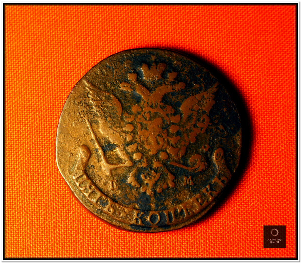 Пять копеек 1767 года. Находка на месте сгоревшего поля