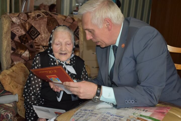 В день своего юбилея Татьяна Алексеевна радушно принимала гостей. Пришли ее поздравить заместитель главы района Сергей Осянин, заместитель главы Верхнеуслонского поселения Вячеслав Раков, председатель Совета ветеранов района Римма Троицкая, начальник отдела социальной службы Ирина Алеева, многочисленные родственники, подруги и соседи. Все они, адресовав юбиляру много добрых слов, пожелав крепкого здоровья, любви и заботы близких, преподнесли подарки. Почетную миссию – вскрыть конверт и прочитать именное поздравление от президента России Владимира Путина, именинница доверила Сергею Викторовичу, а слушая теплые слова признательности главы государства в свой адрес, не смогла сдержать слез.
