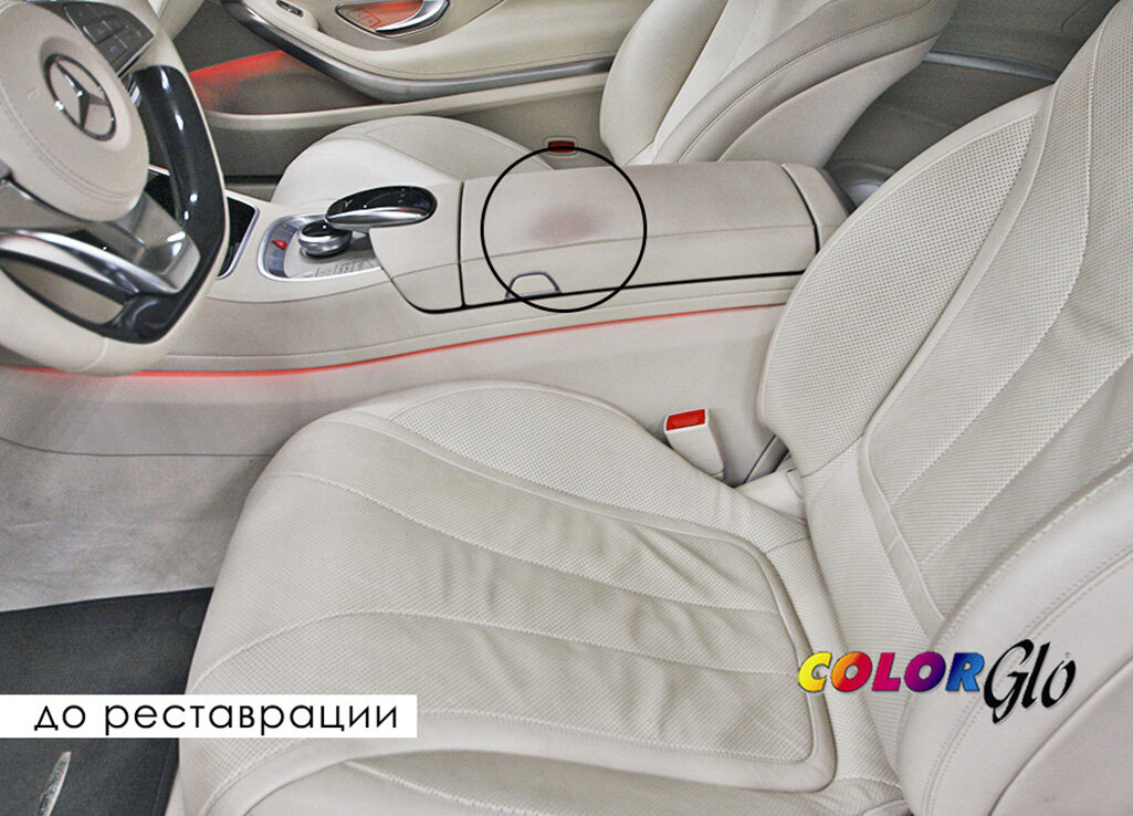 - РЕМОНТ И РЕСТАВРАЦИЯ ПОДЛОКОТНИКА. ДЕТЕЙЛИНГ – ХИМЧИСТКА САЛОНА. ПОЛИРОВКА КУЗОВА. АВТОМОБИЛЬ MERCEDES S-CLASS W222 COUPE. СДЕЛАНО В АВТОАТЕЛЬЕ КОМПАНИИ COLOR GLO RUSSIA