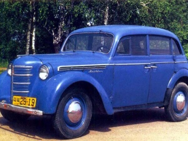 МОСКВИЧ 400–420 Исследователи считают, что славная история автомобиля «Москвич» начинается именно с этой модели, выпущенной в начале декабря 1946 года. Производство машин было организовано на немецкой линии Russelhime, доставшейся СССР в качестве трофея. Первое число цифрового индекса этого семейства автомобилей указывало на модель двигателя, а второе обозначало модификацию кузова. В базовой модификации 420 «Москвич» представлял собой четырехдверный седан, внешне являющийся почти полной копией OPEL KADETT. Естественно, для запуска в серию американский Опель был существенно «переработан». Вся автомобильная документация была переведена в метрическую систему, да и конструкция машины подверглась серьезным изменениям. Свое название «Москвич» получил в честь 800-й годовщины со дня основания столицы СССР. МОСКВИЧ 400–420 «А» Автомобиль выпускался с 1949 по 1952 год в конфигурации «кабриолет», со скатывающейся назад брезентовой крышей. Кузовные элементы машины были существенно усилены