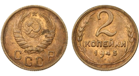 Всех приветствую, в этой статье вы узнаете о цене и разновидностях монеты 2 копейки 1945 года. Всего существует 2 разновидности этой монеты, а также монета специальной чеканки. Первая разновидность. На аверсе, на внешней гребёнке справа от звезды нет уступа. Такая монета в хорошем состоянии будет стоять 150-300 рублей. Вторая разновидность этой монеты заключается уже в том, что на внешней гребёнке справа от звезды есть уступ. Такая монета считается редкой и в идеальном состоянии стоит от 300 до 1500 рублей. Если вам понравилась статья подписывайтесь.