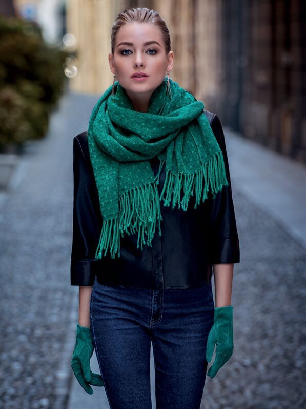 Изумрудный цвет частенько находится на верхней ступени трендовых цветов. Он всегда популярен, потому что выглядит дорого и благородно, придавая своей носительнице изысканности и блеска. С этим цветом можно с легкостью создавать самые разнообразные комбинации: от повседневного лука до вечернего образа.