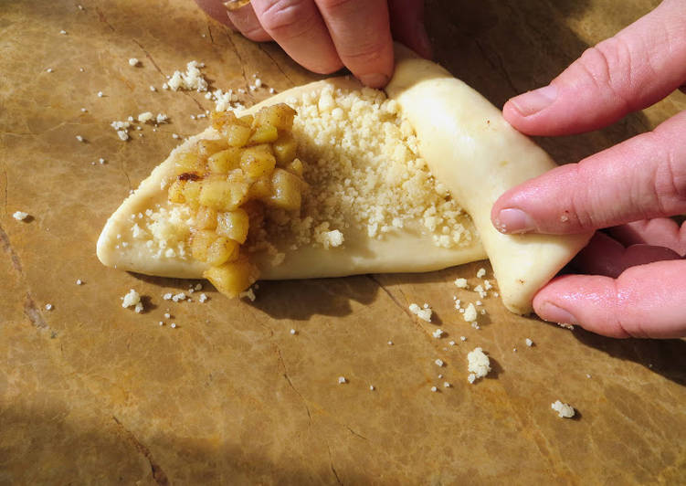 Мягкое и вкусное тесто. Яблоки, которые просто превратились в крем и сладкая крошка - это фантастический пирог! Шарлотка отдыхает! Обязательно попробуйте приготовить и сами все поймете! Ингредиенты Шаги Как большинство пирогов, начнем приготовление с замеса теста. После активации дрожжей (быстрая опара) соединяем все в чашке и вымешиваем минут 5-7. Тесто должно быть мягким и не прилипать к рукам. Тесту даем подняться (подойти) в теплом месте под пленкой, по времени около 1 часа. Пока тесто расстоится, приготовим сладкую крошку - штрейзель. Готовится очень просто, сахар смешиваем с мукой и перетираем с маслом. Яблоки очищаем от шкурки и нарезаем кубиком. Припускаем в сливочном масле минут 7, в конце добавим корицу. Готовое тесто слегка подмесим и делим на 8 равных частей. Подкатываем заготовки в колобки и пусть полежат под пленкой, 5 минут. Каждую заготовку раскатаем в лепешку, на половину насыпаем крошку. Складываем пополам. Еще немного крошки и на каждый край лепешк