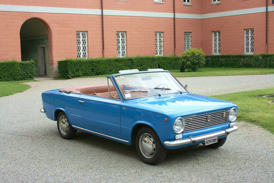 Кабриолет на базе FIAT 124, созданный кузовным ателье Touring из Милана, это автомобиль, в который я влюбился с первого взгляда. Конечно, важен и фактор неожиданности – в таком формате “жигули” мы видеть не привыкли, но надо отдать должное и мастерству изготовления. Специалисты “Туринга” очень бережно подошли к адаптации классического седана под открытый формат. От задних дверей благоразумно решили избавиться, одновременно удлинив передние. Настоящей же находкой стали сильно заваленные назад стойки лобового стекла, угол которых изящно повторяли задние кромки дверей. Прекрасный образчик прекрасного вкуса! Задний диван получился более тесным чем у седана – инженерам Touring потребовалась ниша для хранения складного мягкого верха. Причем, в сложенном виде крыша полностью пряталась вниз, а сам отсек закрывался чехлом из кожзама под цвет салона. На зимний период предлагалась съемная жесткая крыша из плексигласа.
