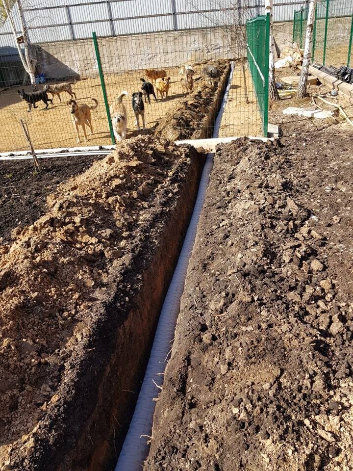 у всех людей весенние ручьи вызывают исключительно положительные эмоции, но только не у нас 😔ибо талая вода - это ежегодный ужас приюта 😲 в этом году нас заливало особенно сильно( поэтому на этом раз мы не просто завезли песок и отсыпали выгулы, но и проложили дренажные трубы 👌