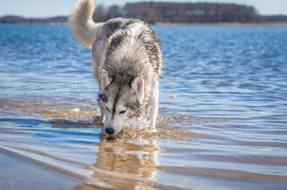 Стая на реке. Купаем хасей, выгуливаем детей)))