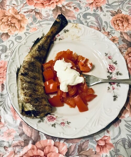 У меня ужин самый "осторожный" прием пищи, особенно когда худеешь. Ужинать стараюсь не позже 19 вечера и слежу, что именно ем. Так как на утро я хочу увидеть отвес, поэтому в составе ужина у меня преимущественно белок + овощи! Мой первый вариант ужина: рыба с салатом из помидор! Рыба минтай + помидор 1 небольшой + сметана 1 ст ложка = 129 ккал! БЖУ: Белки: 18 гр; Жиры: 3 гр; Углеводы: 5 гр. Мой второй вариант ужина: вкусная творожной овощная запеканка! Рецепт творожно овощной запеканки здесь! 193 ккал на одну порцию порция. БЖУ: Белки: 20 гр; Жиры: 8 гр; Углеводы: 8 гр. Мой третий вариант ужина: когда по отдельности есть не хочется, а все вместе очень вкусно! Капуста квашеная 100 гр + морская капуста с баклажанами 100 гр + кальмар консервированный 30 гр + оливковое масло 1 чайная ложка = 138 ккал! БЖУ: Белки: 6 гр; Жиры: 7 гр; Углеводы: 10 гр. Мой четвертый вариант ужина: от этого точно похудеешь! Малокалорийно, но сытно! Постная свинина 60 гр + квашеная капуста 80 гр = 98 ккал!