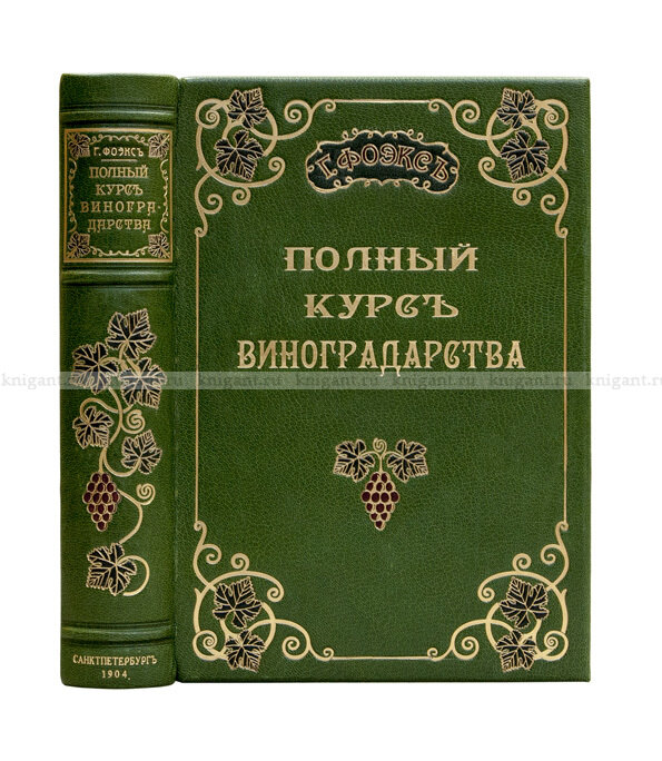 Год издания: 1904 Место издания, издательство, год: СПб.: типо-литография Санкт-Петербургской тюрьмы. – 1904. – [6], 868 с.: ил. Размер: 27х20 см Состояние: отличное Переплёт: В современном травянисто-зелёного цвета цельнокожаном переплёте с золотым тиснением и аппликациями из тёмно-зелёной и красной кожи. Обрез с рисунком «павлинье перо». Форзацы оклеены декоративной бумагой со сплошным красочным узором из бабочек и листьев. О книге Настольная книга виноградаря. Редкое антикварное издание. Автор на протяжении тридцати лет исследовал практические и теоретические вопросы виноградарства, вёл научную работу в лаборатории и «на полях», в виноградниках. В книгу вошли систематически изложенные тексты лекций по этому предмету, читанных автором в национальном земледельческом училище в Монпелье. Книга предназначалась в качестве ценного, капитального руководства для учеников земледельческих училищ, также была рекомендована всему «профессиональному цеху» виноградарей. В книге рассказываетс