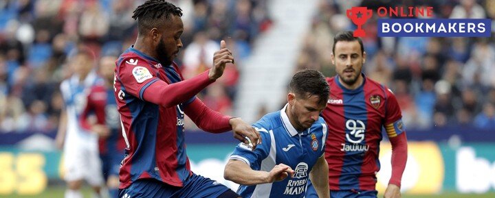 Место: «Сьюдад де Валенсия». Валенсия Дата: 21 апреля 2019, воскресенье. Начало матча в 13:00 (московское время) Турнир: Испания. Примера. 33-й тур Котировки букмекерских контор П1 (2.37) X (3.70) П2 (3.00) В одном из поединков 33-го тура Испанской Примеры между собой сыграют Леванте и Эспаньол. Эта встреча пройдет в Валенсии в предстоящее воскресенье и начнется в 13:00 по московскому времени. Предматчевый анализ и прогнозы букмекеров Леванте находится в ужасном состоянии перед этой встречей. Вот уже 8 туров кряду этот клуб не знает побед. Такие результаты привели к тому, что Леванте упал на 16-ую строчку. От зоны вылета на данный момент его отделяют лишь два очка. Валенсийцам срочно нужно собраться, иначе бодрый старт сезона может превратиться в плачевную концовку. Букмекерские конторы считают, что Леванте является фаворитом предстоящей игры. Они оценивают его победу в 42%. Эспаньол тоже находился внизу турнирной таблицы, но 7 набранных очков за 3 последних матча чемпионата позволил