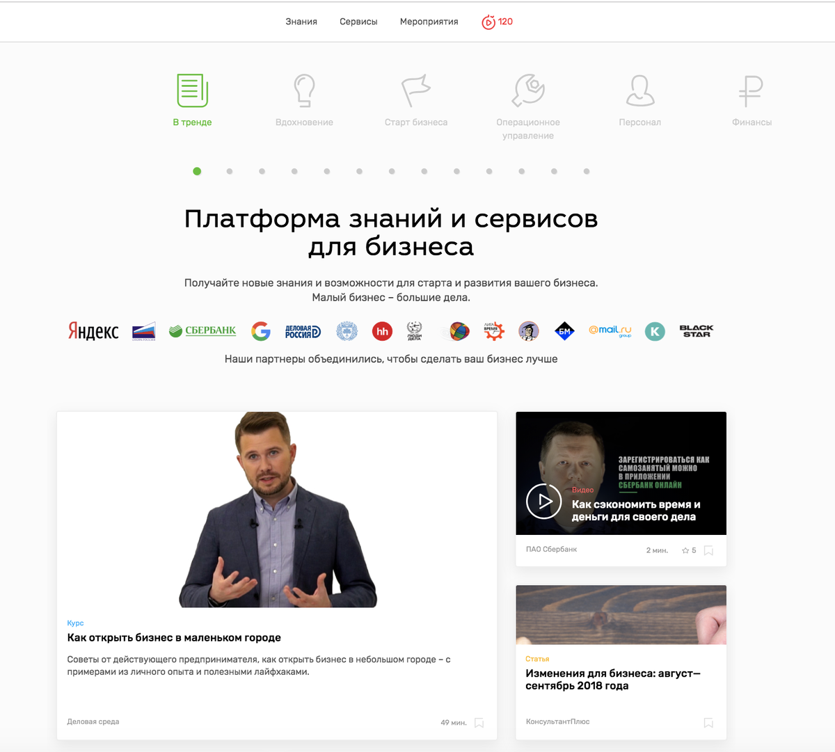 15 февраля 2018 компания «Деловая среда» запустила Платформу знаний и сервисов для бизнеса www.dasreda.ru. Платформа работает по принципу маркетплейса, где различные организации размещают свои материалы и сервисы по созданию и развитию бизнеса. К концу 2018 на платформе было размещено больше 600 материалов от более чем 200 партнеров — ведущих компаний России. При разработке Платформы мы провели масштабное исследование по методологии дизайн-мышления. Одним из наших инсайтов стало понимание, что предприниматель учиться не хочет. Вместе с тем исследование выявило, что у предпринимателя есть явная потребность в знаниях. Он хочет знать конкретные инструменты, которые помогут ему больше зарабатывать и тратить на это меньше усилий. Получается противоречие: предприниматель хочет знать, но учиться не хочет. Тогда мы проанализировали, сколько времени проводят пользователи на различных образовательных платформах и выяснили, что средняя продолжительность — всего 2 минуты. У нас появился вызов — д