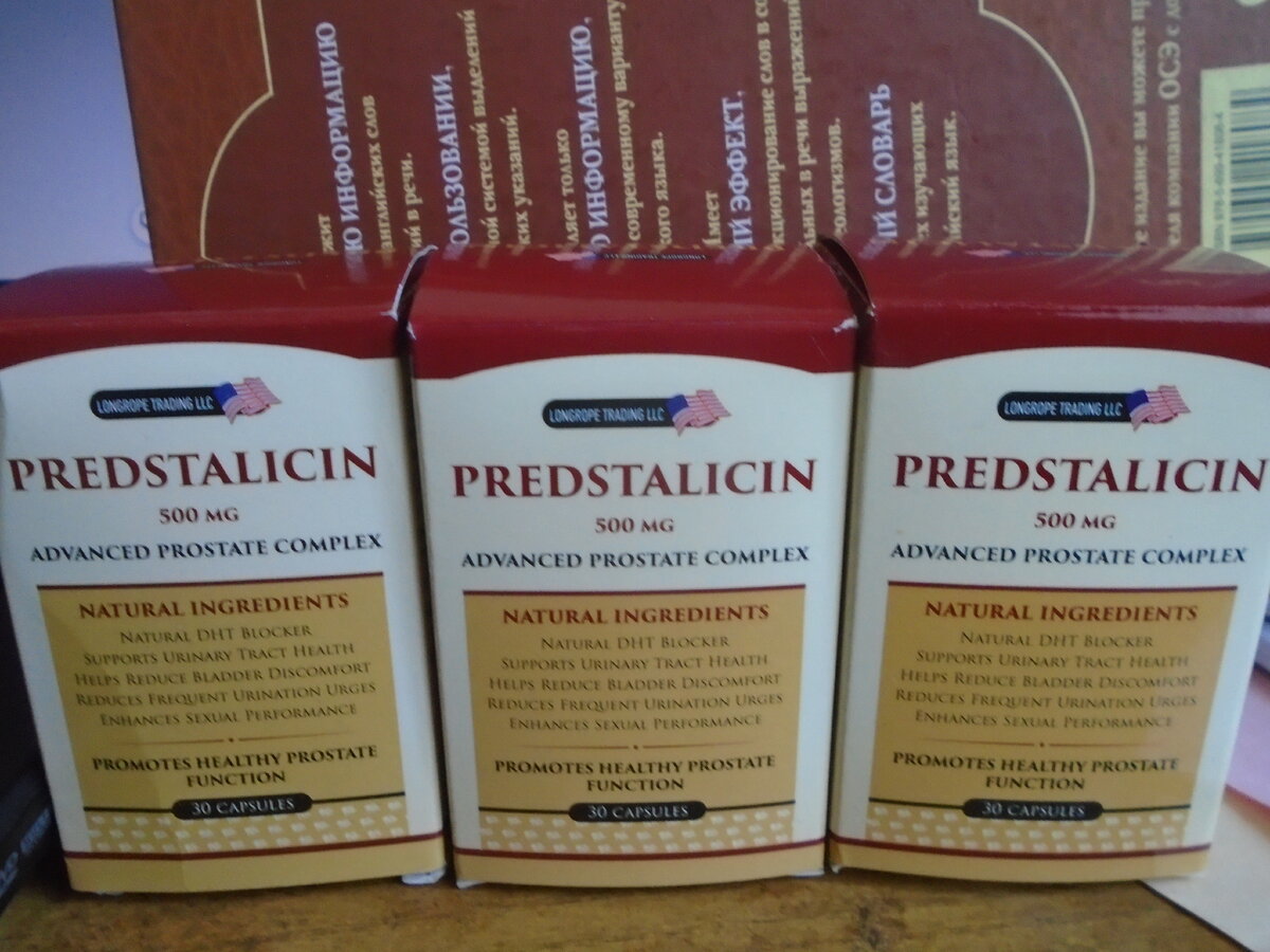 PREDSTALICIN - нелекарственное средство приготовленное из экстрактов растений с целью воздействия на простату. Средство необходимо принимать два раза в день по одной капсуле. Запивать нужно 100 мл жидкости. Принимать средство необходимо в течение одного-двух месяцев. Компоненты в составе средства: