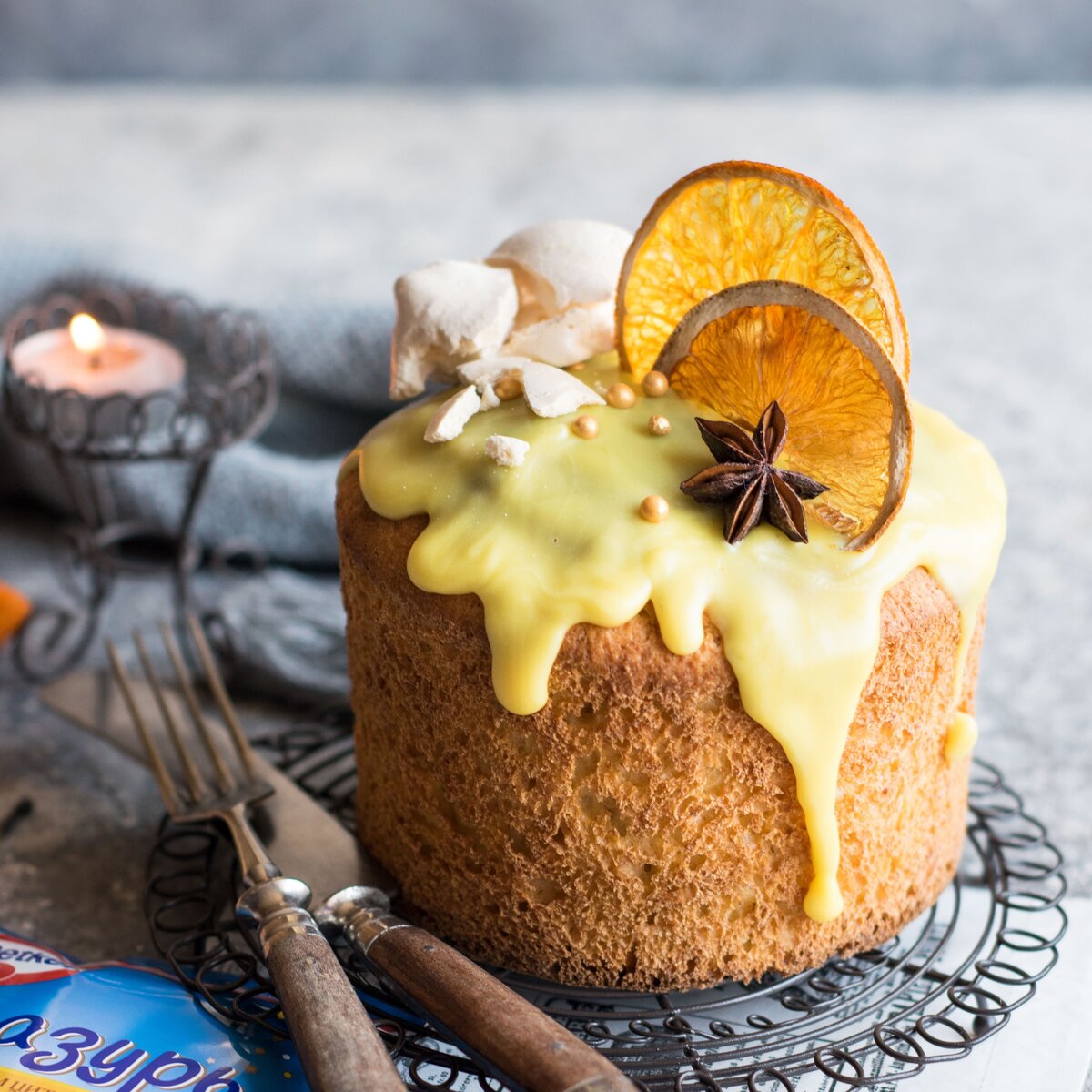 Готовьте куличи с любовью и ингредиентами Dr. Oetker. Апельсиновый декор • Покрываем кулич Глазурью со вкусом цитрусовых: