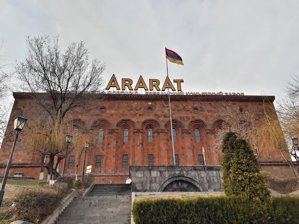 В Ереване есть два коньячных завода, которые заслуженно известны на весь мир; Арарат и Ной. Говорят, что сырье сюда попадает непосредственно из Франции. Может это и так. Спорить не буду. Оба завода выпускают внушительную линейку коньяков. Лично мне больше понравился напиток от завода Арарат.