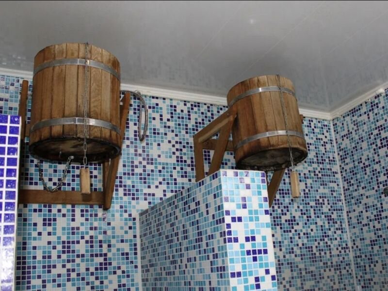 Есть мнения, что подвод горячей воды для душа в бане не обязателен, ведь контрастные процедуры подразумевают использование холодной воды. Наиболее доступной и легко возводимой конструкцией для таких случаев является ведро-водопад, которое устанавливается в отведенном для купания месте на высоте от 2 м. и используется по назначению в нужный момент.