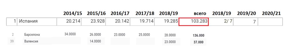 Первая испанская футбольная федерация. Она такой и останется, англичане их не настигнут. Тут всё традиционно. Будут выступать 7 клубов (4 в Лиге Чемпионов и 3 в Лиге Европы).