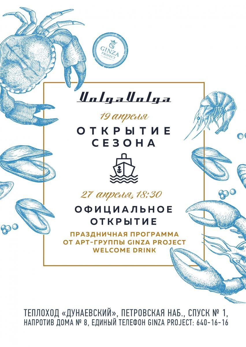 Солнечные и тёплые деньки в Петербурге так и манят насладиться шумом воды и лёгким бризом с Невы. А лучше всего это сделать в комфортном ресторане-теплоходе Volga-Volga, который объявил начало нового сезона в этом году. Сегодня, 19 апреля, будет запущен самый первый круиз этого года по водам Невы реки. А через неделю, 27 апреля, состоится торжественное открытие нового весенне-летнего сезона для ресторана. Гости вновь смогут отдыхать на свежем воздухе, одновременно радуясь уютной обстановке, атмосферным и таким величественным видам Петербурга и наслаждаясь вкусной едой ресторана. На открытии сезона «Волга-Волга» планирует организовать всем посетителям вечеринку. В субботний день гостей будет встречать шоу от арт-группы Ginza Project, которая сыграет популярные мелодии и исполнит каверы на полюбившиеся хиты. В честь долгожданного тёплого сезона гостям будут предложены приветственные напитки от заведения. Добро пожаловать на борт Volga-Volga. Занимайте свои забронированные места и пригото