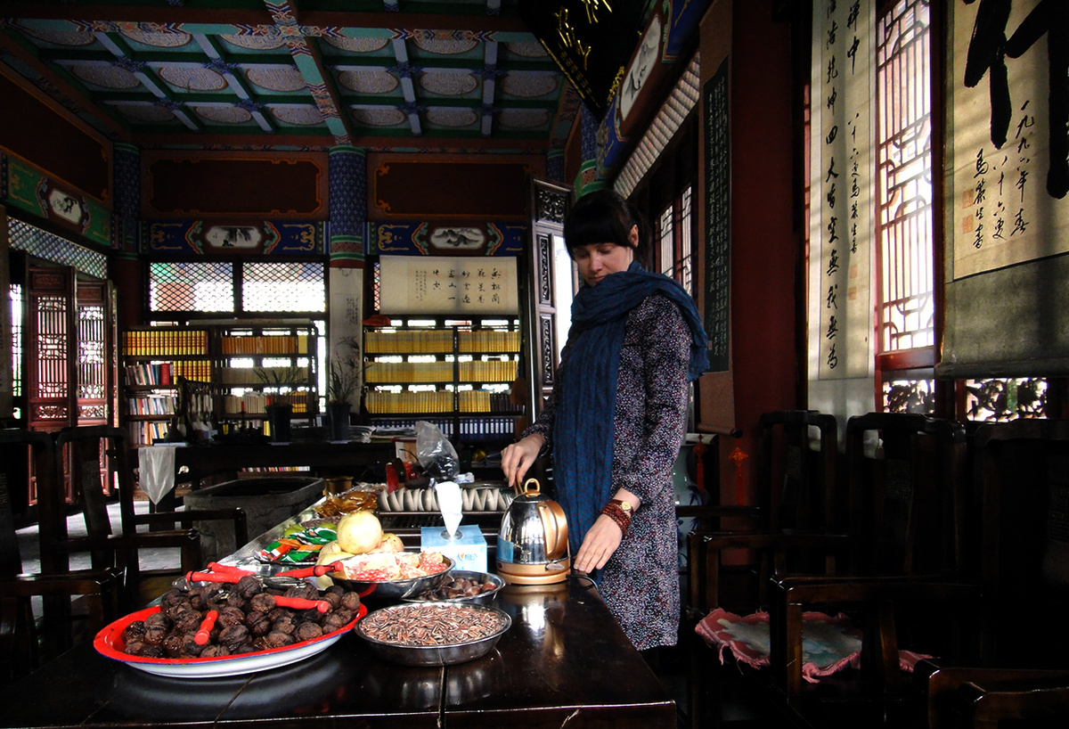 На обед в тот день давали несколько острых и маринованных блюд, кажется готовил кто-то из прибывших на церемонию старушек, я обычно избегала есть такое - у меня сильно краснело лицо. Но зная, что после обеда я смогу отдохнуть в одиночестве в своей комнате, я позволила себе попробовать, будучи уверенной что не придется подавать чай.