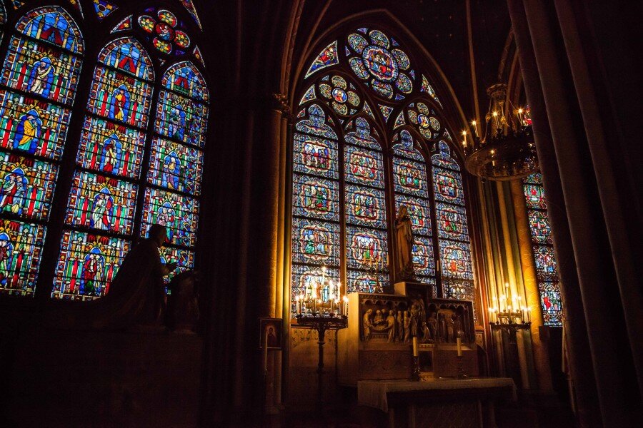 Нотр-Дам с его витражами для меня прочно слился с всеми фильмами 50-60 годов про ооочень условно Средние века, где у дам - прически из модного каталога года выхода фильма, герои, сидя в мрачных тюрьмах, всегда идеально выбриты, Ричард благороден по умолчанию, принц Джон труслив и подл по умолчанию же, и т.д., и т.п. И все фильмы восхитительно красочны, как витражи.