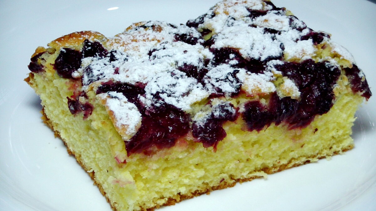 Когда у нас в доме готовится такой пирог, это настоящий праздник. Вроде не сложно, но всегда выпечка с вишней у нас в почете. Не только пироги, а и разные печеньки и кексики.. Вообщем мы очень любим вишню, поэтому в сезон закатываем баночки. Круглый год наслаждаемся вкусняшкой. Хотя сейчас не проблема купить замороженую или консервированную в магазинах, но мы все же предпочитаем свою. Отвлекся...Идем готовить пирог... ПРИГОТОВЛЕНИЕ: Первым делом я открываю баночку вишни и выкладываю ее в дуршлаг, чтоб стек сок. Кстати его ни в коем случае не выливаю. Очень вкусное желе получается, но про это в другой раз.. Пока вшня стекает, взбиваю яйца с сахаром. Добавляю ванилин и размягченное сливочное масло. При помощи миксера довожу до однородной консистенции. Просеиваю муку,смешиваю с разрыхлителем и постепенно ввожу в смесь, не переставая размешивать миксером. Довожу тесто до консистенции густой сметаны. На противень застеленый пергаментом или фольгой, выкладываю тесто, выравниваю его и сверху