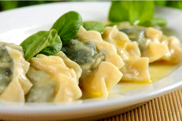 Русские вареники обычно готовят с картошкой, с капустой , с грибами и вишней. Мы будем готовить будет начинку из шпината и сыра. Так как я очень люблю шпинат , то стараюсь добавлять его в разные блюда. Попробуйте обязательно, вам понравится. Ингредиенты: · 300 г пшеничной муки · специи · 120 мл воды · яйцо · соль · 0,5 кг шпината (свежего или замороженного) · 200 г сыра фета · 1 лук репчатый · 4 зубчика чеснока · Ложка сливочного масла Способ приготовления: 1. Используйте миксер, чтобы смешать муку с солью, горячей водой и яйцом. Затем месить гладкие клецки вручную. Тесто оставить в холодильнике на 20 минут. 2. Готовить начинку. Очистить шпинат, чеснок и лук репчатый нарезать небольшими кубиками. 3. Обжаривать на медленном огне в течение нескольких минут, затем посолите. 4. После жарки при необходимости слейте лишнюю жидкость. Положите шпинат в миску. 5. Добавить сыр фета и все тщательно перемешать. Оставить в холодильнике на 20 ми