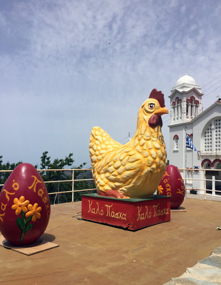 Пасха на Кипре, как и в Греции, - один из самых главных праздников. Они украшают везде улицы, набережные, площади огромными фигурами яиц, корзин с яйцами, свечей, куриц, кроликов. Причем не обходится без украшения ни один уголок. Начиная от набережной в центре города Пафоса, заканчивая даже просто дорогой в глухой горной деревеньке. Праздник для них очень важен, отмечают с размахом. Даже в отеле стараются поделиться с гостями радостью наступления Пасхи. Так, например, у нас в отеле в каждый номер принесли тарелочку с крашенными яйцами и их традиционные кусочки пасхального кекса с цедрой лимона или апельсина. Он у них больше похож на кекс, ну или пирог, может даже просто на хлеб, не такой формы как у нас кулич. Очень интересно смотрелись на обычном завтраке в отеле со шведским столом крашеные яйца. Даже люди далекие от религии были приятно тронуты, такой проявленной заботой, ведь отель мог этого и не делать. На набережной Пафоса в историческом центре была размещена инсталляция корзина