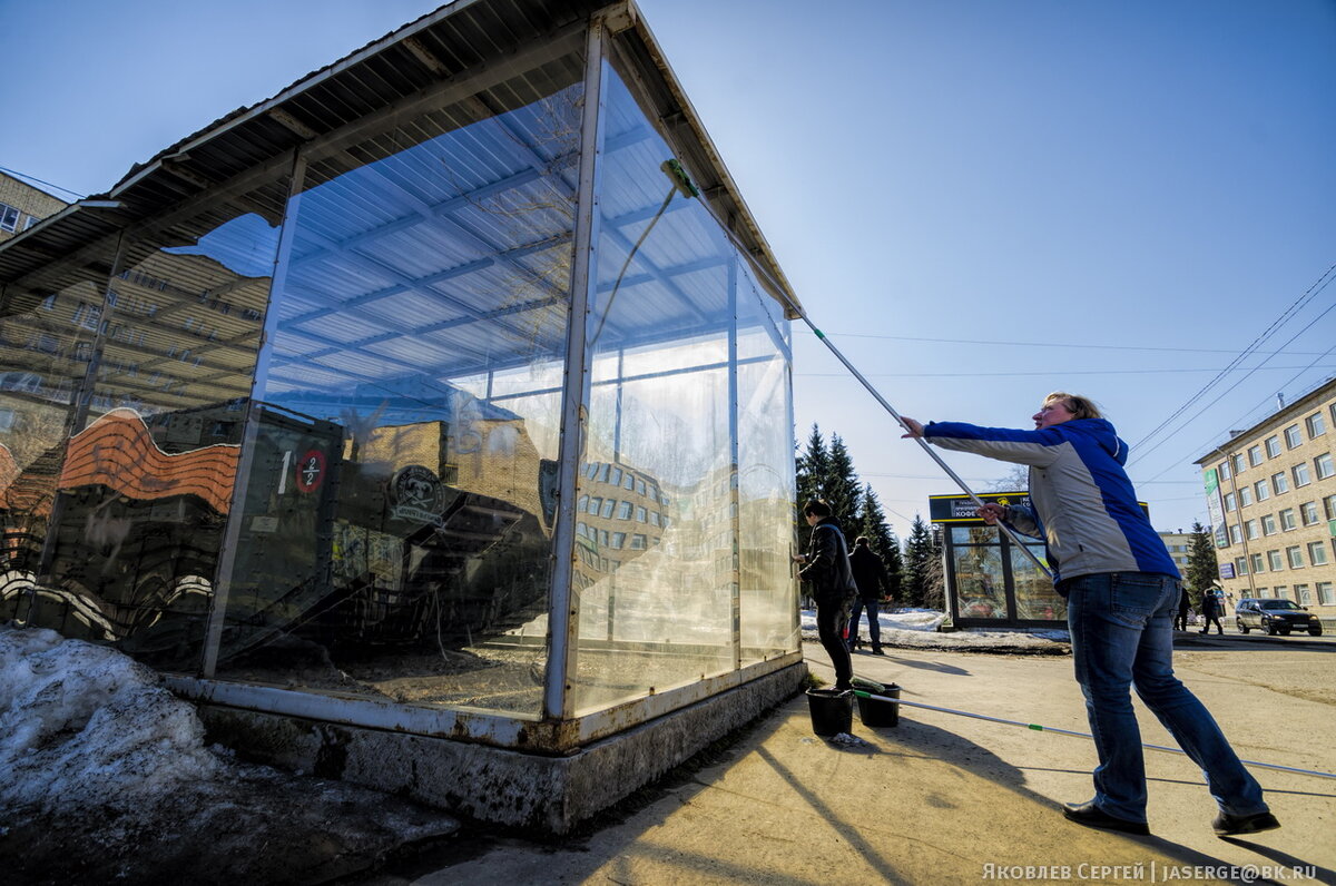 Английский танк Марк V 1918 года (а точнее его пластиковый футляр) отмывают сотрудники архангельского краеведческого музея.