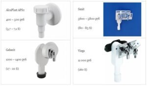 Представленная на рынке арматура для слива отработанных вод отличается размерами, формой. От этих параметров зависят производительность, эффективность, другие показатели работы сифона (даже такие характеристики, как простота установки и возможность предотвращения засоров).