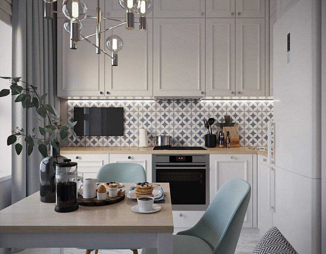 Начнем показ с самого вкусного - с кухни! Площадь кухоньки 11 кв.м. Как обычно, мы не могли обойтись без мягкого диванчика на кухне. Ну, любим мы диванчики. Уютно с ними, плюс дополнительное, спальное место никто не отменял. В этом проекте мы не стали делать гостиную и выгораживать спальное место, а сделали просто большую удобную спальню!