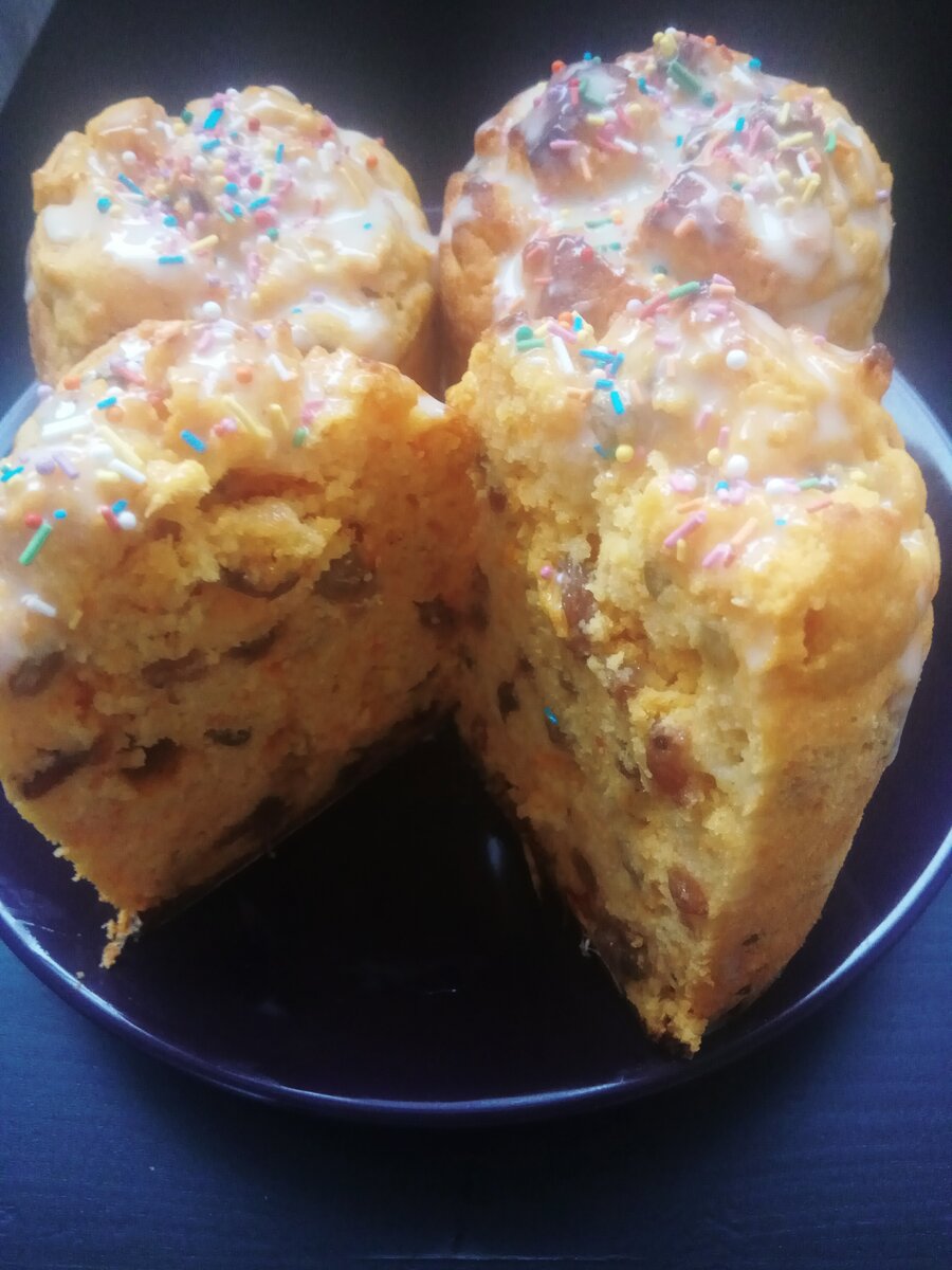 Пасха не за горами, и сегодня я предлагаю свой рецепт куличей. Этот рецепт значительно отличается от оригинального, надеюсь Вам он понравится. Куличи получаются воздушными, с приятным фруктовым ароматом, и долго остаются мягкими. В составе я не использую сахара, сладость куличам придаст большое количество сухофруктов, в данном случае: курага и изюм. Эти сухофрукты одни из самых доступных и приносят огромную пользу для организма: сохраняют в себе большое количество витаминов и минералов, что очень важно в ожидании лета. Курага и изюм не вредят фигуре, так как содержат сложные углеводы. Итак, готовим ингредиенты: Белки отделяем от желтков и взбиваем в тугую пену. Убираем в холодильник. В чаше блендера измельчаем курагу вместе с желтками. Должна получится воздушная, однородная масса. В глубокую емкость выливаем молоко, добавляем смесь кураги и желтков. Взбиваем венчиком. Добавляем муку и разрыхлитель, взбиваем до однородной массы. Добавляем изюм, перемешиваем. Далее аккуратно