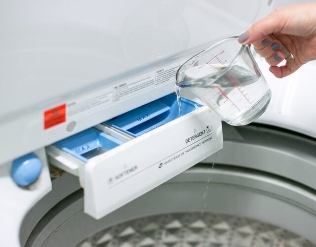 - Если на вещах остаются белые мыльные разводы, то добавляйте при стирке немного уксуса.