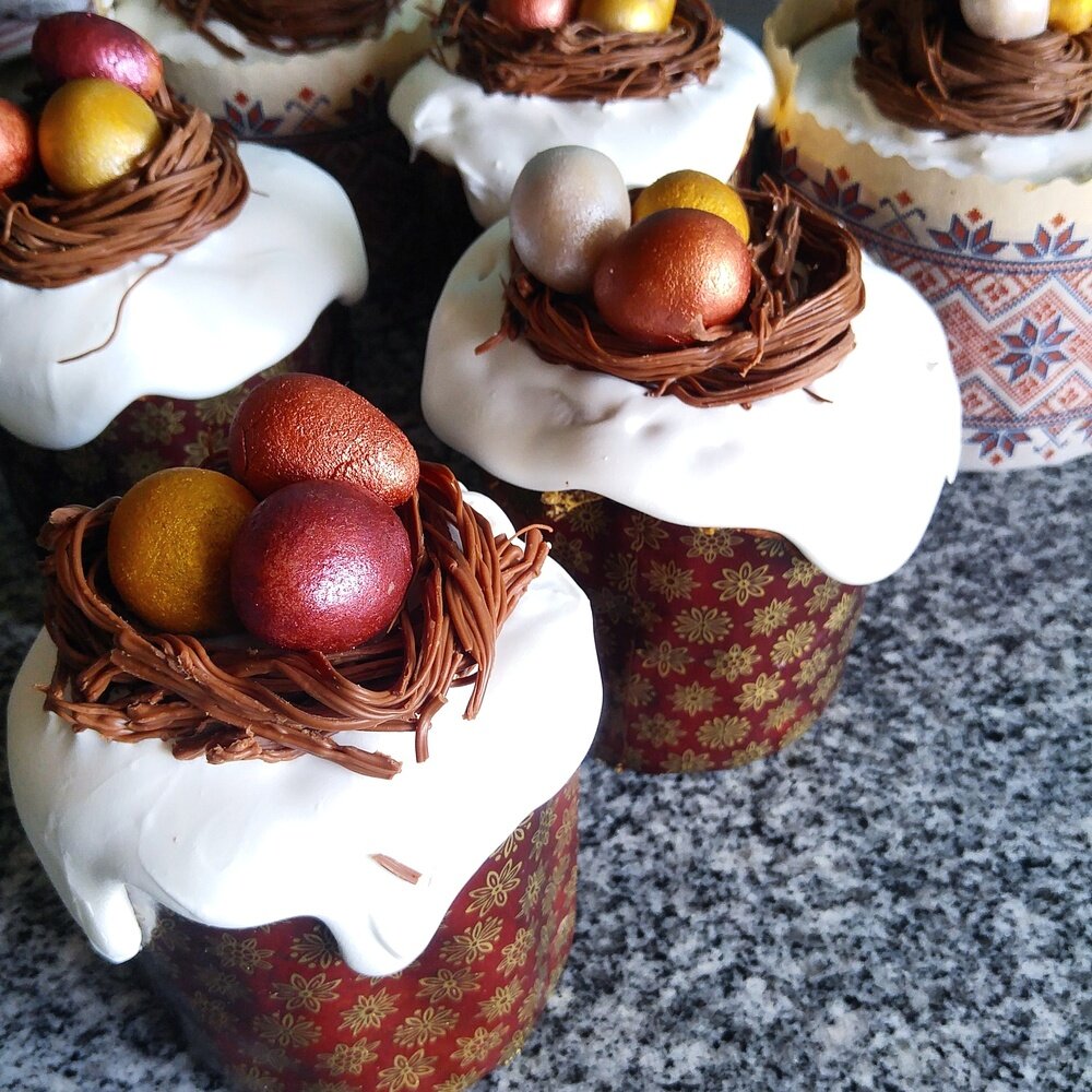 Золотой кулич. Золотым кулич получается из-за куркумы в составе. Ингредиенты: 25 г свежих дрожжей; щепотка соли; стакан сахара; стакан молока; 4 стакана пшеничной муки; 50 мл сметаны; 70 г сливочного масла; 1 ч. л. ванильного сахара; 2 яйца; 100 г изюма; 1 ст. л. куркумы. Для глазури один яичный белок и 3 ст. л. сахарной пудры (взбить). В теплом молоке (38-39 градусов) смешайте соль, сахар и дрожжи. Всыпьте пару ложек муки, размешайте. Оставьте опару в теплом месте до появления пенной шапочки, на минут 15. Добавьте сметану комнатной температуры, растопленное и охлажденное масло, вбейте яйца. Перемешайте. Начните частями вводить просеянную муку, добавьте куркуму. Замесите мягкое эластичное тесто. Соберите в ком и оставьте под пленкой в миске на 1,5 часа. Обомните тесто, добавив изюм, снова соберите ком. Разделите тесто на 4 части. Каждую выложите в смазанную растительным маслом форму или жестяную банку, наполняя на треть. Оставьте тесто еще на 30 минут, а затем запекайте в разогретой до 180 градусов духовке полчаса-40 минут. Остудите куличи и выберите из форм. Осталось украсить выпечку глазурью и кондитерской посыпкой. Доброй и вкусной Пасхи!
