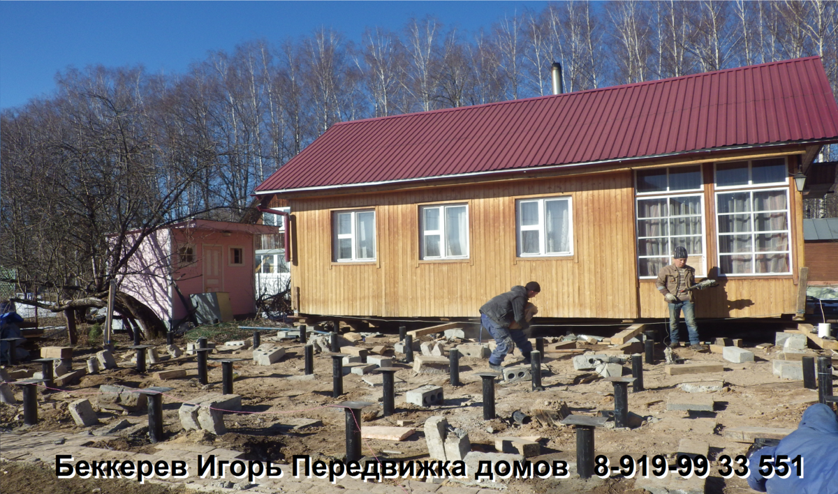 Сегодня передвинуть деревянный или даже каменный дом не сложно и не дорого. Небольшой деревянный домик можно передвинуть самостоятельно без особых затрат. Передвижка дома может потребоваться из-за нарушений норм градостроительсва, санитарных или пожарных норм. Очень удобно переместить дом для ремонта или замены фундамента. Как происходит перемещение строений? Самая простая технология, это перемещение строения по рельсам на металлических трубах. Технология разработана Беккеревым в 2009г. (патент на изобретение 2016г.) и на сегодня считается самой доступной и простой. Сначала дом приподнимается на необходимую высоту. Под дом подводятся рельсы из деревянных брусьев и стальные трубы диаметром обычно от 50 до 73 мм. Дом опускается на эти трубы и без больших усилий тянется лебедкой. Не редко приходится под дом подводить усиливающую или скрепляющую обвязку из бруса. При необходимости укрепляется или выравнивается нижняя обвязка. Передвижение дома достаточно безопасно для строения,