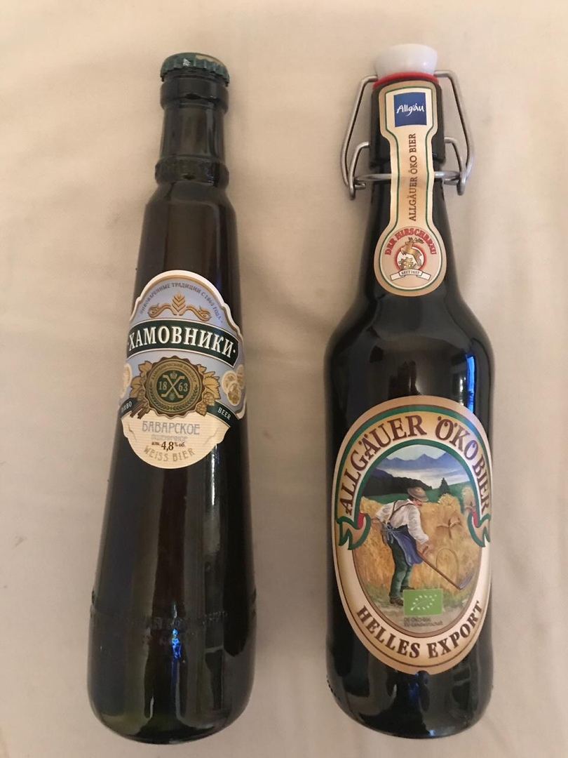 Добрый день, дорогие друзья! С Вами Витёк - ваш любимый алкоблогер. Предлагаю сегодня поговорить вот о чем: вы оставляете огромное количество комментариев о том, что в России пиво нет, что всё оно плохое и тому подобное. Во-первых я думаю, что вы слишком категоричны, Во-вторых давайте разберемся, если русское пиво по-вашему плохое - импортное наверное хорошее, верно? Я решил сравнить старую добрую Пшеничку от Хамовников с дорогим импортным пивом за 250 рублей. Будет ли разница? ВЫБОР ПИВА: Я взял Хамовники Венское как недорогое пиво. Мне оно уж очень пришлось по вкусу. Не понимаю, почему люди пишут столько негатива, мне кажется, что они его просто не пробовали. Я выбрал его для сравнения как одно из моих любимых. К выбору дорогого пива и подошел проще - просто купил самую дорогую бутылку пива в магазине. Ей оказалось Альпийское пиво Alligauer Okobier. Про него я ничего не знаю, вижу впервые, знаю одно, что на кассе я выложил за неё целое состояние! СОСТАВ: ХАМОВНИКИ: В