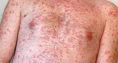 Если вы перенесли ветрянку в детском возрасте, то не факт, что, будучи взрослым человеком, не заболеете ей повторно. Этой “детской” болезнью, как правило, поражаются мужчины от 20 и до 45 лет. Заболевание будет протекать, конечно, менее болезненно, чем у лиц, не переболевших в пубертантном периоде. Сначала, как и у большинства инфекционных заболеваний, следует инкубационный период, составляющей в среднем две недели. Симптоматика в этот момент почти всегда отсутствует. Затем наступает начальная стадия, во время которой на теле появляется сыпь в виде прыщиков, локализующихся сначала в районе живота и боков. Затем они переходят в область паха, на грудь и плечи, волосистую часть головы, а также на лицо и слизистые оболочки (чаще всего поражаются губы). За 2-3 суток высыпания превращаются в пузырьки, наполненные серозной жидкостью. Пузырьки прорываются и подсыхают, что приводит к образованию корочек. Эти корочки постепенно отваливаются (обычно через 7-10 дней). На их месте, как правило,