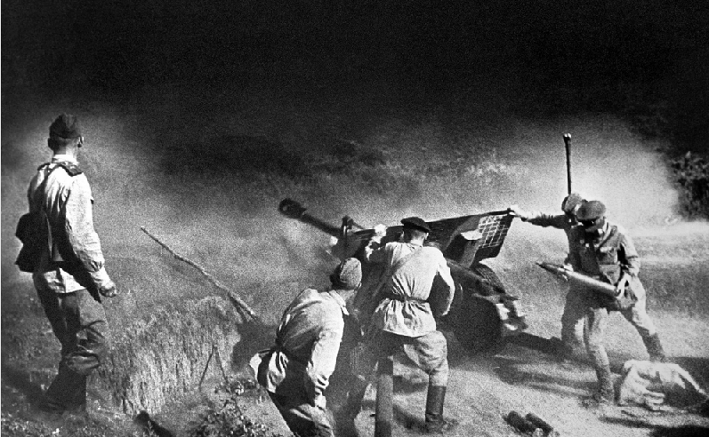 Нас после Крыма перебросили в Литву. Долгое время мы с противником не встречались. Первая стычка произошла в местечке Погиры. Мы очень беспечно шли строем. Далее стали выбирать позиции для своих орудий. Наткнулся на бродившего немца. Почти одновременно произвели очереди из своих автоматов и рванули у своим.