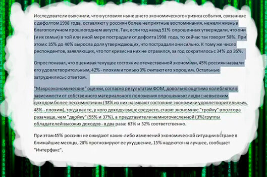 При работе с текстом нам часто приходится копировать вырезать и вставлять участки текста. Можно это делать через контекстное меню, выделяя текст и нажимая правую кнопку мыши. Или при помощи сочетания клавиш «CTRL+C» - копировать, «CTRL+X» - вырезать и «CTRL+V» - вставить. Хочу рассказать еще об одном способе, которым сам активно пользуюсь. Буфер обмена здесь вообще не используется. Особенно он удобен если в буфере обмена уже что-то есть и нужно это там сохранить. Ведь при каждом новом копировании старая информация удаляется. Конечно, если вы не пользуетесь программами, расширяющими возможности буфера обмена. Выделяем нужный участок текста, наводим на него мышь, нажимаем на ней левую кнопку и удерживая ее просто перемещаем выделенный фрагмент в нужное место. Получается аналог процедуры «вырезать - вставить» . Выделяем нужный участок текста, наводим на него мышь, нажимаем удерживаем на ней левую кнопку, нажимаем клавишу «CTRL» и не отпуская ее тащим выделенный фрагмент в нужно место. Ре