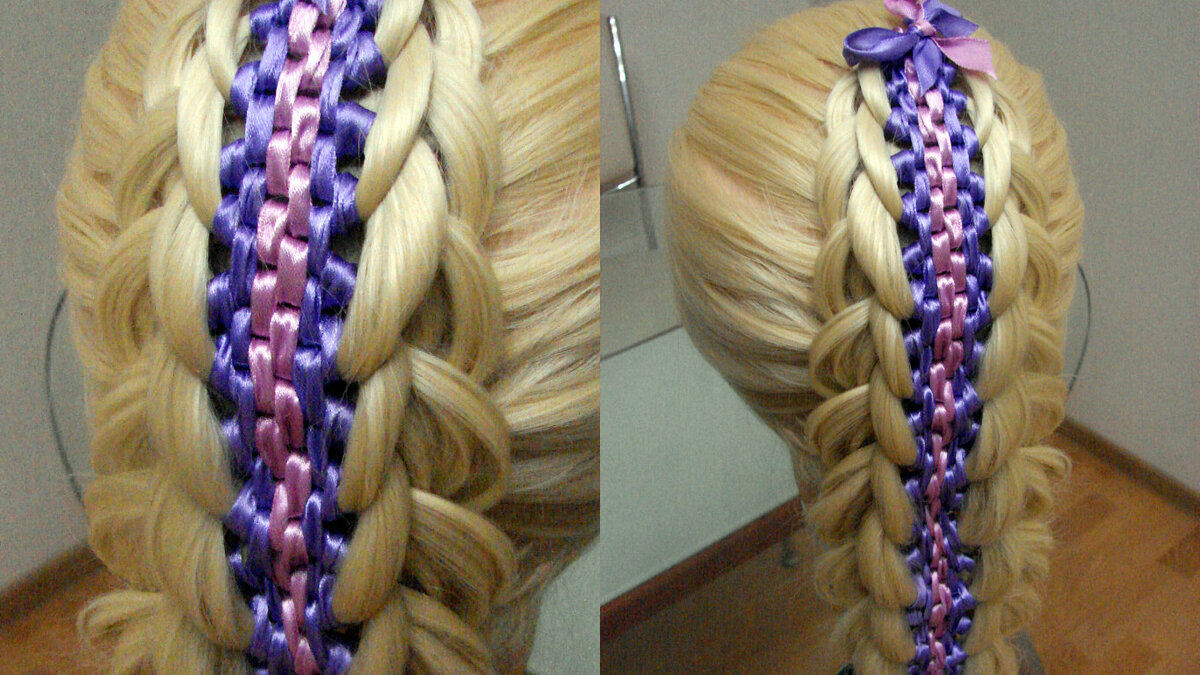 Яркая коса с цветными лентами. Смотрите подробный видео урок.