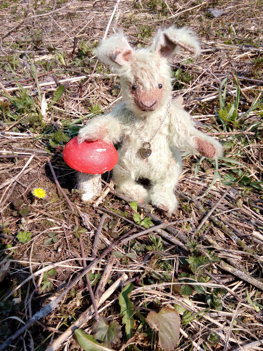 Всем привет. Давно я здесь не появлялась и не писала ничего. просто ничего нового и интересного не происходило, жмзнь тянулась в обычно-повседневном рутинном ритме... И, вот сегодня, представляю Вашему вниманию Хранителя лесной Полянки-зайца Йети!😉👍 Почему именно Йети?- спросите Вы. Потому, что мне он напоминает Снежного Человека; но, в отличие от последнего, наш Хранитель не злой и страшный, а добрый, уютный и очень симпатичный!😍 На шее у заяса висит Замочек, на который он запирает свою Полянку от лишних глаз. Увидеть и побывать на этой волшебной Полянке посторонним, а в особенности человеку, да и то не всем, а лишь избранным, можно только один раз в году- в день Весеннего Равноденствия..... Ну а сам Зайка появился, благодаря Олечке Беккер и ее замечательному проекту. Малыш ростиком 17 см (без учета ушек); сшит из светло-зеленого мохера, вставочки из домотканного полотна; наполнен опилками, непряденной шерстью и песочком с Азовского моря; слегка тонирован пастелью. Голова и лапки