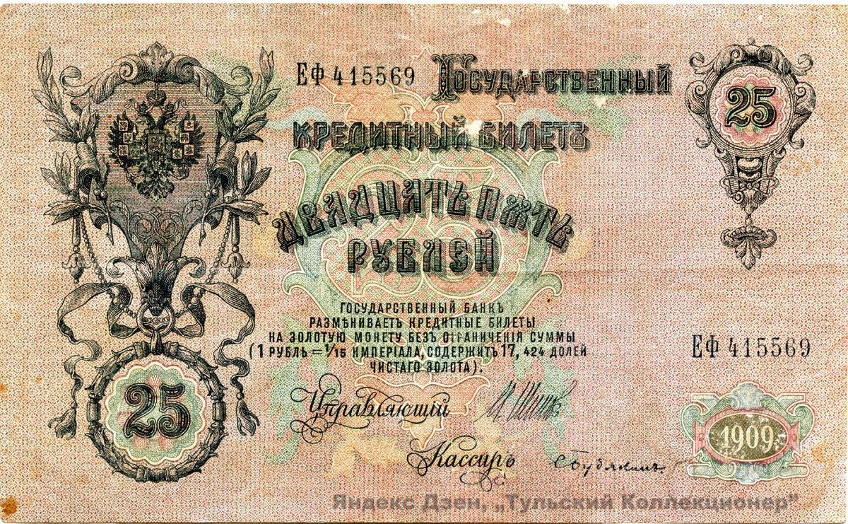 Государственный кредитный билет 25 рублей образца 1909 г.