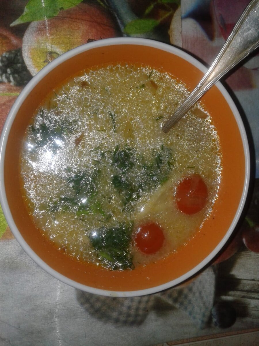 -полчашки яичной лапши или вермишели. Либо 2 картофелины; - 6 штук свежих помидорок-черри.