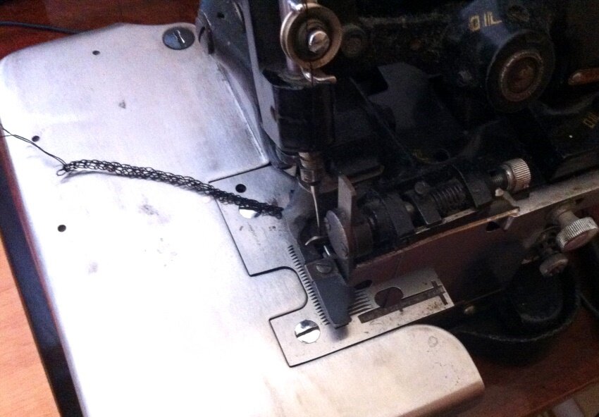 После размещения статьи Зачем закреплять оверлочную строчку и как это сделать правильно: 4 надежных способа в комментариях попросили наглядно показать ("в рисунках, фото" и т. д.) как закреплять оверлочную строчку при помощи самого оверлока (способ № 4). На наш взгляд, весь процесс подробно расписан в статье и можно понять и без фотографий.)) Но тем не менее, попробуем показать наглядно по шагам на примере старого трехниточного оверлока 51 класса. Делаем цепочку из ниток примерно 10 см, для этого жмем на педаль оверлока, чтобы он поработал вхолостую. Далее укладываем получившуюся цепочку на срез ткани, которую планируем обметывать. Лапку оверлока поднимаем в верхнее положение. Подкладываем срез ткани под лапку оверлока (цепочка на срезе). Прокладываем оверлочную строчку, захватывая несколько сантиметров оверлочной цепочки (можно 1-2 см). Кончики ниток обрезаем. Оверлочная строчка надежно закреплена. Способ применяется, когда нужно закрепить оверлочную цепочку в начале строчки. Если