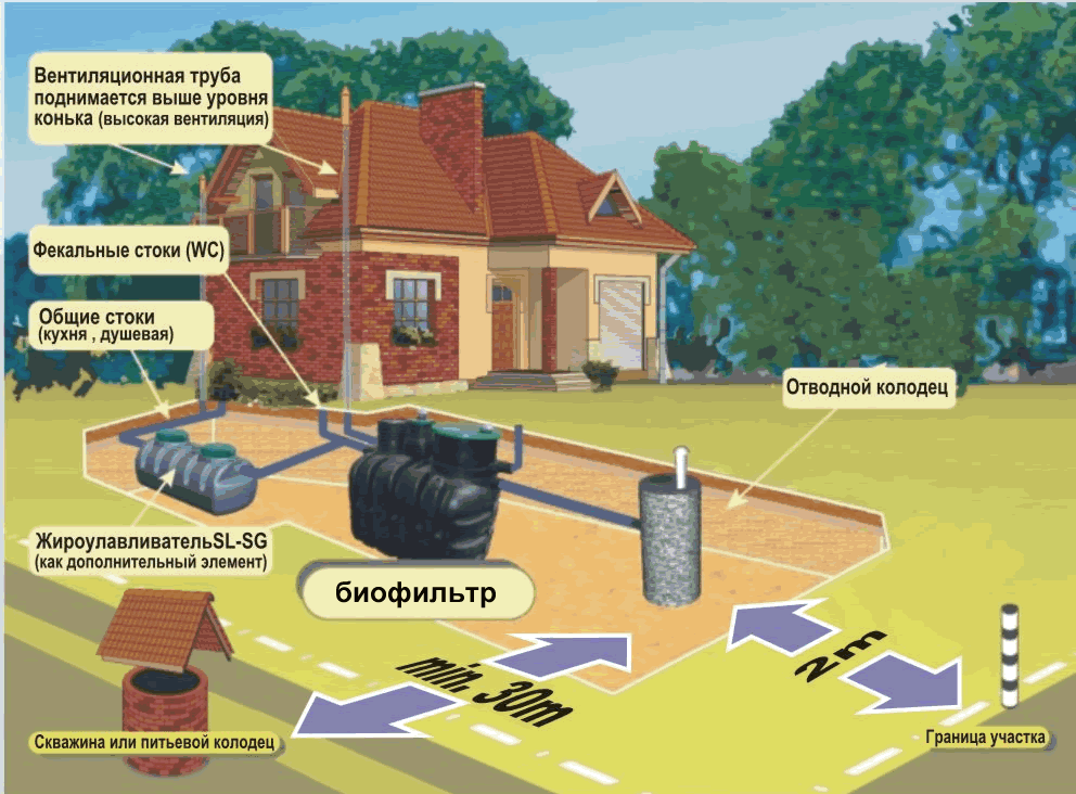 Расстояние от септика до дома, колодца с питьевой водой, сада и других важных объектов, которые находятся на дачном участке или возле него, четко регламентируется санитарными нормами и правилами (СНиП). Правила размещения септика Локальное очистное сооружение, будь оно приобретено в специализированном магазине или возведено своими руками, является потенциально опасным объектом для окружающей среды. Поэтому перед его конструированием необходимо получить соответствующее разрешение в санитарно-эпидемиологической станции (СЭС). Документ, разрешающий проводить строительные работы на дачном участке, может быть получен только в том случае, если проект полностью соответствует следующим нормам: Если производится застройка нового участка, то место установки септика следует выбирать в первую очередь. На застроенной территории планировочные работы выполнить будет несколько сложнее, однако и в этом случае нужно строго соблюдать все санитарные нормы. При выборе оптимального места под отстойник необх