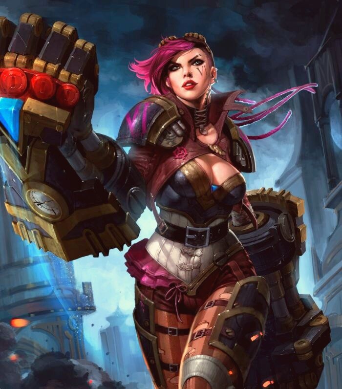 В Лиге Легенд хватает красивых девушек, которые притягивают внимание всех игроков. Но среди них есть та, которая отличается своим обликом. И дело сейчас не в прическе и огромных перчатках. Лига объединяет разные направления и стили фантастики. А Вай представлена именно в стиле стимпанк, который сейчас активно развивается. Весь ее костюм, перчатки и татуировки показывают принадлежность к стимпанку. Здесь мы видим механизмы и циферблаты, большущие очки на голове, защитные металлические наплечники и главное оружие Вай - это массивные хекстековые перчатки. Сзади внешний стиль еще больше подчеркивает детали стимпанка. Здесь мы видим более детально проработанные перчатки, большой циферблат с механизмом на спине. Розовый цвет прически также бросается в глаза, и шикарно дополняет отличительные черты данного героя. Внешность Вай довольно обманчива, ведь за милым личиком скрывается опасная и импульсивная девушка, которая любит махать кулаками. Самого героя знают многие, но вот о прошлом знают