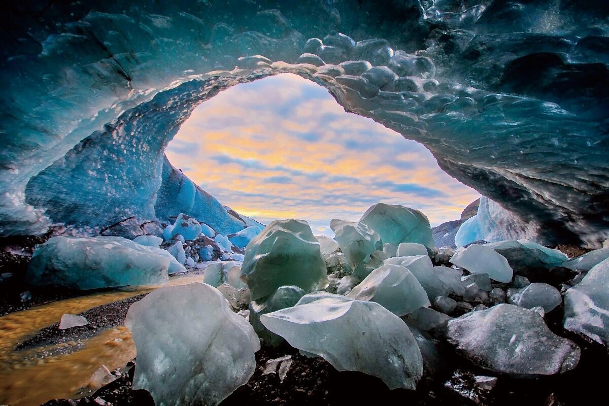 На нашей планете много удивительных мест, в которых стоит побывать. Пещеры — чудесное создание самой природы. Ледяные пещеры — это временные образования, которые появляются на кромках ледников. В любое время года температура там ниже нуля градусов, а дно и стены покрыты причудливыми ледяными наростами. В сочетании с преломлением света возникает картина фантастической красоты. Скафтафетль (Исландия) Возникла в результате таяния вершин ледника. Талая и дождевая вода замерзали и образовывали тоннели. Стены и потолок пещеры синего цвета, а дно из осадочных пород темно-синее. Лед, который спускался со склонов веками, имеет очень высокую плотность без воздушных пузырьков. Отсутствие воздуха означает, что лед пропускает лишь синий свет. А зимой поверхность льда омывается водой, и свет в пещеру льется сплошным потоком. Глыбы льда сверкают как сапфиры невероятной величины, обеспечивая интерес туристов к пещере. Айсризенвельт (Верфен, Австрия) Пещера-лабиринт создавалась природой около ста тыся