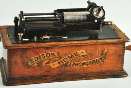 В 1878 году, 4 мая Томас Эдисон презентовал миру фонограф. Это был один из первых приборов способный воспроизводить звук. Многие тысячи людей хотели послушать звук издаваемый данным изобретением. Это было настоящее чудо. Существует несколько легенд о том, как Томасу пришла в голову идея записать звук. Но многие из них сводятся к тому, что он хотел записать телефонные звонки которые поступали в его лабораторию. Звук записывался на специальном барабане покрытом оловянной фольгой, и углубления созданные при помощи подвижной иглы. Стоимость машины для воспроизведения звука составляла 18 долларов. В 1879 году фонограф был впервые продемонстрирован в России. Конструкция фонографа не давала качественного звука, да и как оказалось в последствие была тупиковой ветвью, хотя Эдисон и внёс за многие годы более 80 различных изменений в конструкцию аппарата. Главным пожалуй достижением фонографа является то, что Томас сумел записать голоса многих видных деятелей искусства и политики того времени. Т