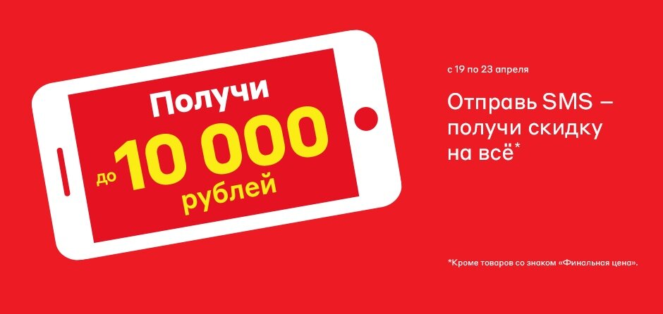 117860953444548 - скидка 2 000 ₽ на покупку от 9 990 ₽ 113157938069111 - скидка 3 000 ₽ на покупку от 29 990 ₽ Для получения других промокодов, до 3-го мая отправь SMS с текстом MVIDEO KOSMOS на номер 2420 (короткий номер М.Видео) и получи промокод на скидку до 10 000 рублей.