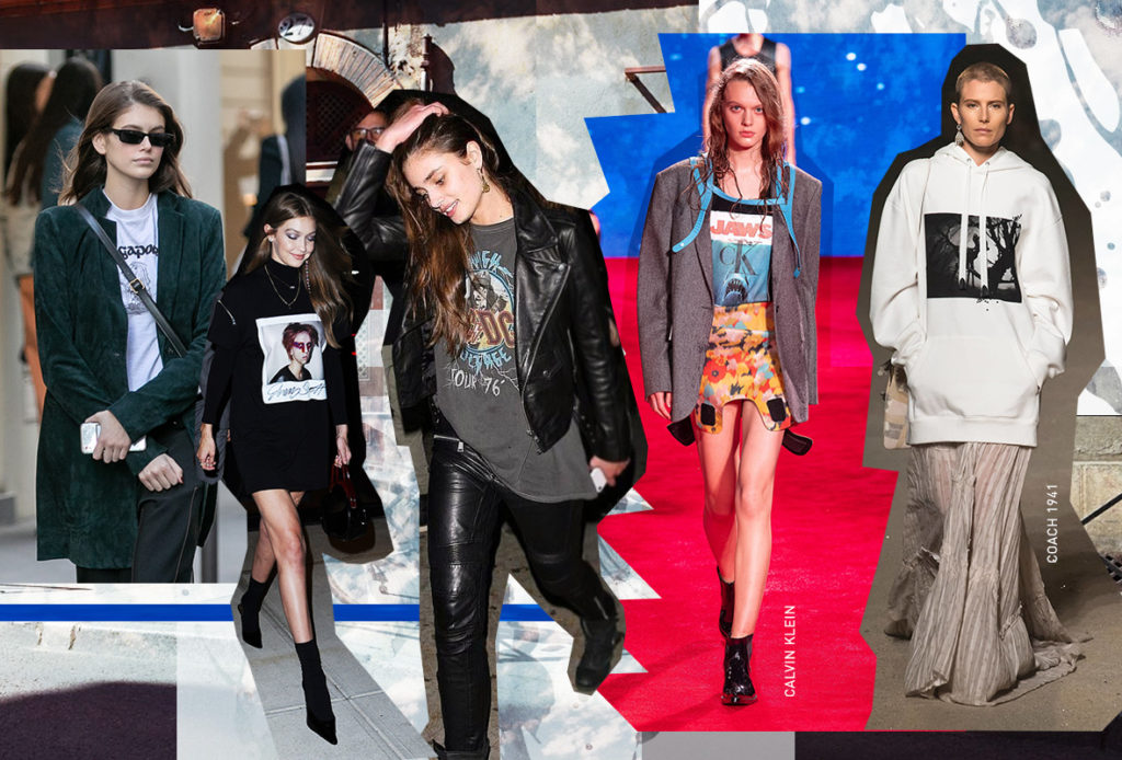 Есть ли у вас футболка с фото любимой музыкальной группы? Поздравляем, самая модная вещь сезона уже у вас в гардеробе. Даже если слова «мерчандайзинг» еще нет в вашем фэшн-лексиконе, вы на 90% уже имели с ним дело. Это та сувенирная продукция, с которой вы уходите домой, например, после концерта или кинопремьеры: футболки с автографом кумира, одежда с логотипами групп и постерами к фильмам. НО В НЫНЕШНЕМ СЕЗОНЕ ЭТО УЖЕ НЕ ПРОСТО ВЕЩИ «НА ПАМЯТЬ»: МЕРЧ СТАЛ ПРЕДМЕТОМ ОХОТЫ МОДНИЦ! На самом деле эта тема уже давно вдохновляет дизайнеров. Раф Симонс как принт использовал обложку альбома New Order в 2003 году и Joy Division – в 2004-м, а на показе Calvin Klein весна–лето 2019 показал коллекцию с постерами к фильму «Челюсти». На шоу Vetements были представлены анораки с флагами стран, у Coach – постеры к классике Disney: мультфильмам про Пиноккио и Бэмби, а у Gucci (вне подиума) – футболки с логотипом киностудии Paramount. Чтобы купить мерч, необязательно ехать на музыкальный или кинофестив