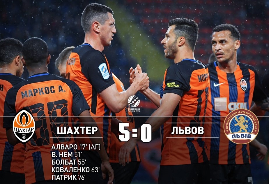 4 мая в Харькове в рамках 27-го тура УПЛ Шахтер с разгромным счетом 5:0 выиграл у Львова. Интересно, что первый тайм завершился с минимальным перевесом "горняков", которые вышли вперед после автогола Альваро. Во второй половине встречи дончане оказались более успешными у ворот львовян и четыре раза отличились голами. Точными ударами отличились Веллингтон Нем, Сергей Болбат, Виктор Коваленко и Алан Патрик. Премьер-лига Украины. 27-й тур Шахтер Донецк - ФК Львов - 5:0 (1:0) Голы: Альваро, 17 (автогол), Веллингтон Нем, 51, Сергей Болбат, 55, Виктор Коваленко, 63, Алан Патрик, 76. Также 4 мая в УПЛ Заря уступила Мариуполю (0:1), а Динамо сыграло вничью с Александрией (1:1).