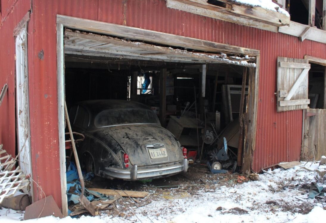 Представляю удивление новых владельцев фермы, купленной на аукционе, обнаруживших при осмотре своего приобретения автомобиль, стоявший в ветхой мастерской. Это был не просто старый автомобиль, а Jaguar Mk2 ранних выпусков, с номерами штата Иллинойс, простоявший в заброшенном сарае, на ферме в городе Клинтон штат Айова 36 лет. Машину не пощадило время и предыдущие владельцы, кузов требует ремонта, пороги кое-где прогнили насквозь, сквозные дыры есть и в днище, хотя лонжероны целые. Салон требует перетяжки, да и по механике, явно, придется перебирать каждый узел, разбирать всё до винтика, в общем, проводить полную ревизию и реставрацию. Машина была засыпана всяким хламом, перед ней было несколько рядов шлакоблока, двери этого сарая не открывались четверть века наверное, - говорит новый владелец фермы. По его мнению, «Ягуар» заехал на столь долгую стоянку приблизительно в 1983 году, возможно предыдущие владельцы не желали тратиться на дорогостоящий ремонт кузова, отложив его на пото