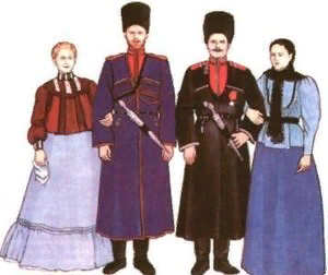 Национальные костюмы Донского и Кубанского казака и казачки